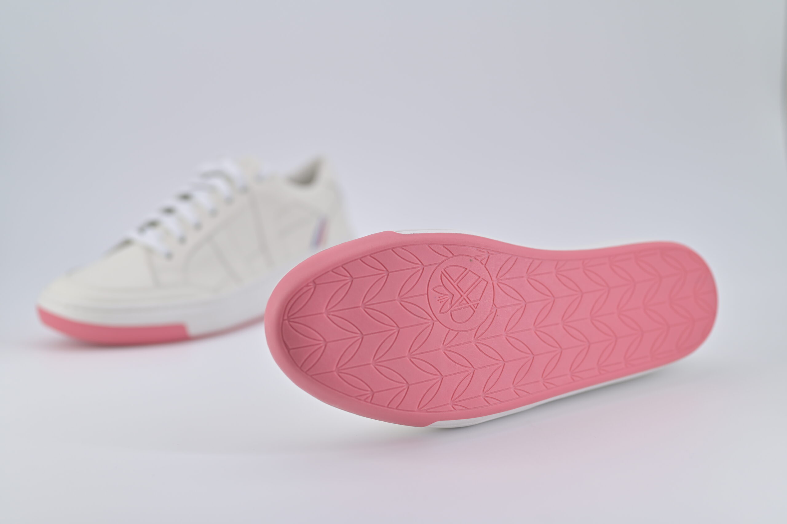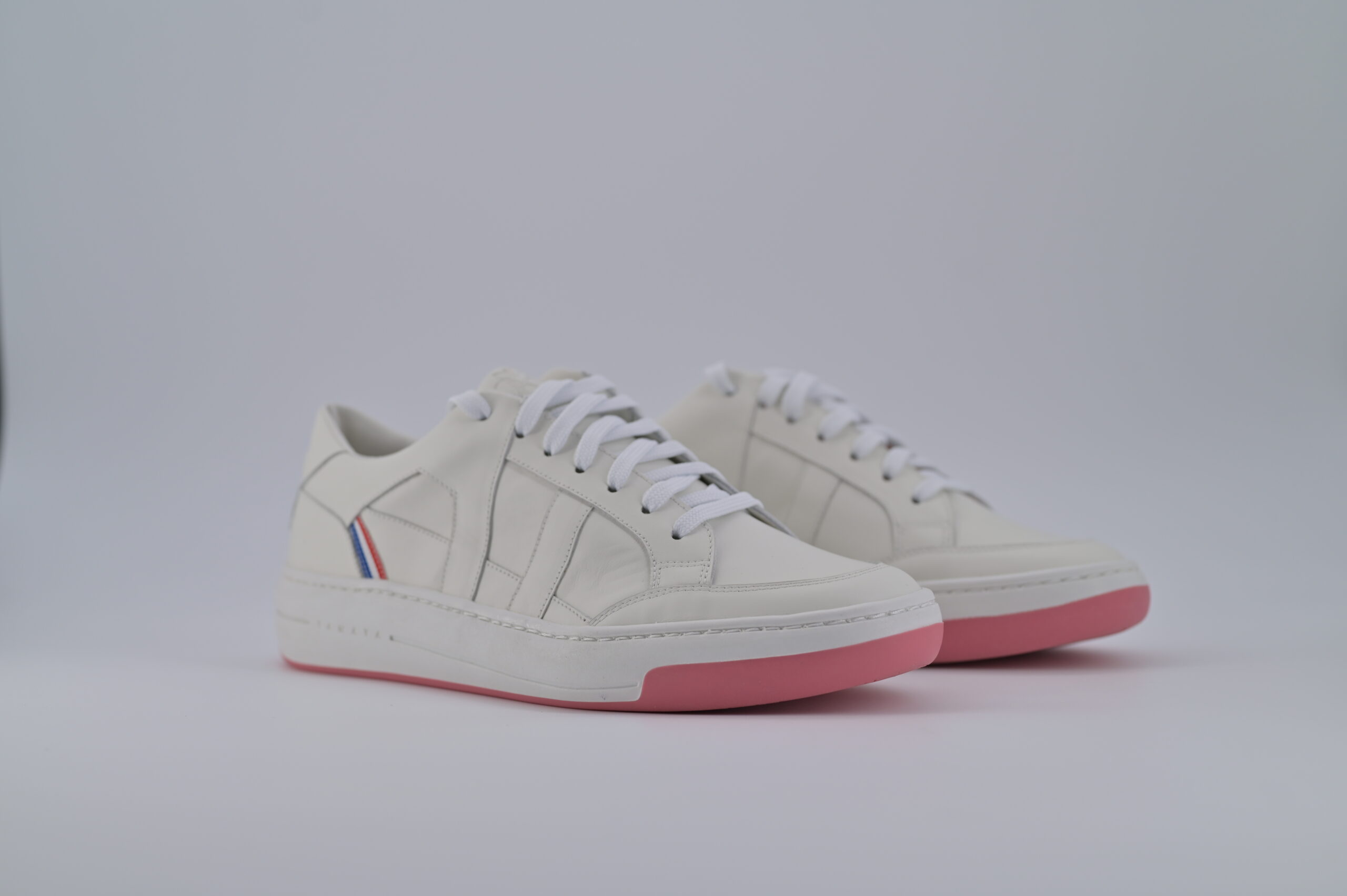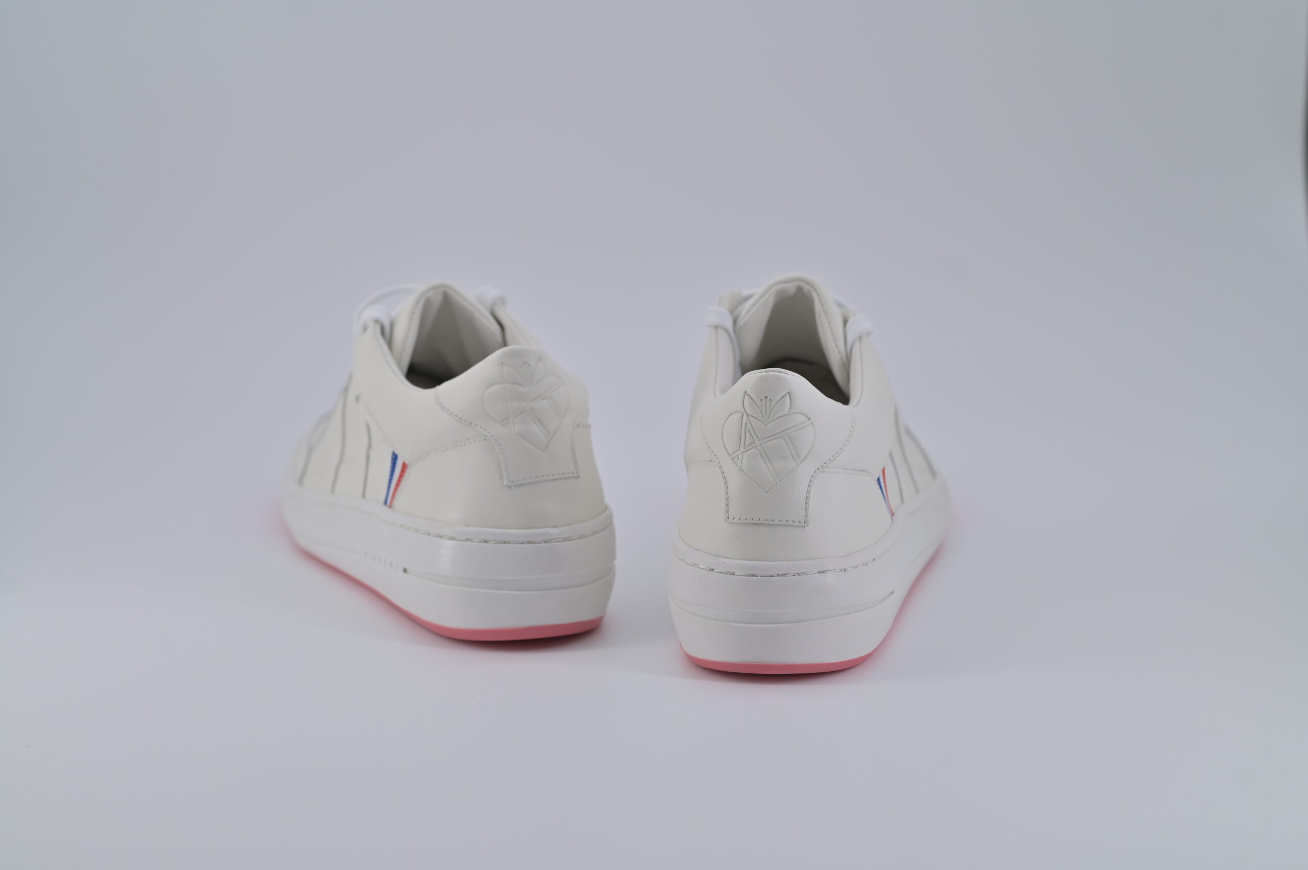 Le modèle AT 1 Mwezi repose sur un blanc dominant, qui capte la lumière. La semelle rose contrebalance le tout, comme une teinte qui apparaît lorsque la lumière évolue.